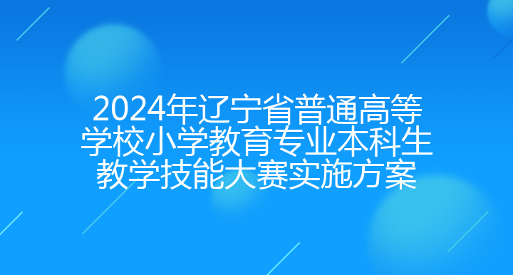 2024 年辽宁省普通高等学校小学教育专业本科生教学技能大赛实施方案