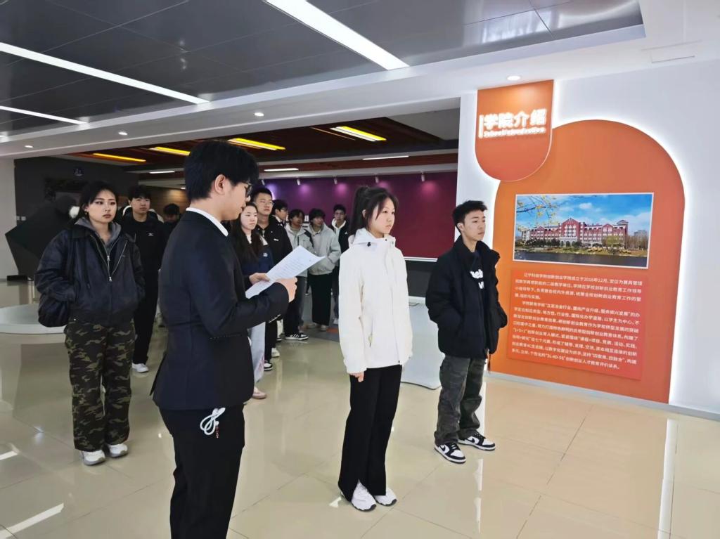 在一楼,讲解员对本校创新创业学院的基本情况进行介绍,主要包括:本学院基本信息、举办过的赛事、专利树、大创项目和各楼层的情况。二楼是智慧教育中心,相应的智慧教育教学模块都整体集中在二楼进行展示。三楼艺创空间中,各式各样的展品让学生们大开眼界。学生们通过对艺创空间的参观,能够更加了解本校的创新创业教育发展情况。创新创业孵化中心,全校的创业孵化项目都在此集中孵化。四楼是教育部科学工作能力示范基地,在这里可以对全校学生进行文科类和行政类专项培训,从而提升学生的职场应变能力。五楼是新工科创新创业综合实训中心,包括先天特质沙盘实训室、创新思维实训室、创业能力训练实训室、VBESE综合模拟运营实训室,让大家对商业的运行以及总体性的商务运作有一个全面而深入的了解。六楼是创新创业工作坊,它分为MET创新创业实践工作坊和PNT制造创新创业实践工作坊,两个工作坊从智能制造、3D打印等方面,全方位地提升学生的创新创业能力。