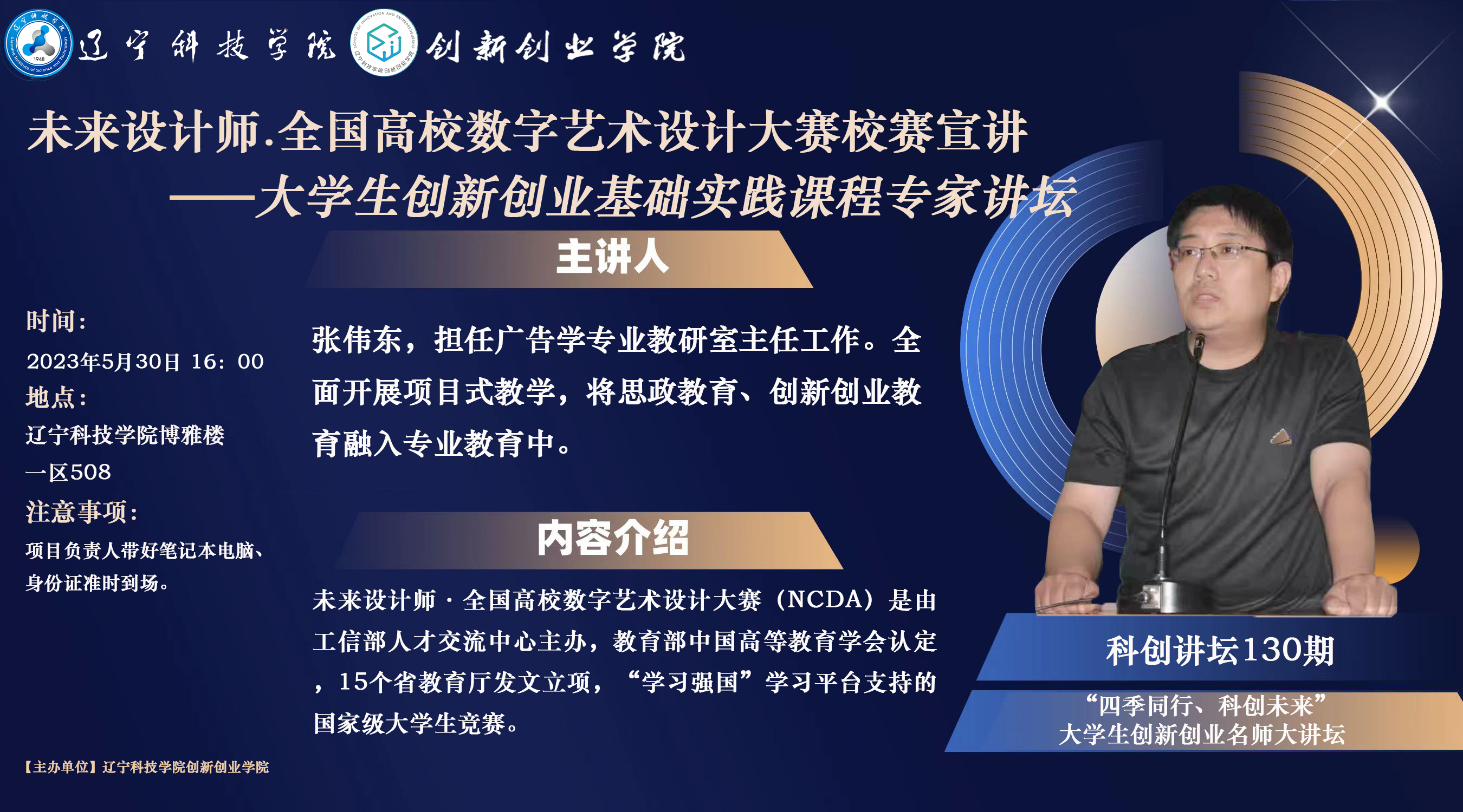 第一百三十期科创讲坛活动通知———未来设计师·全国高校数字艺术设计大赛校赛赛前培训讲座通知