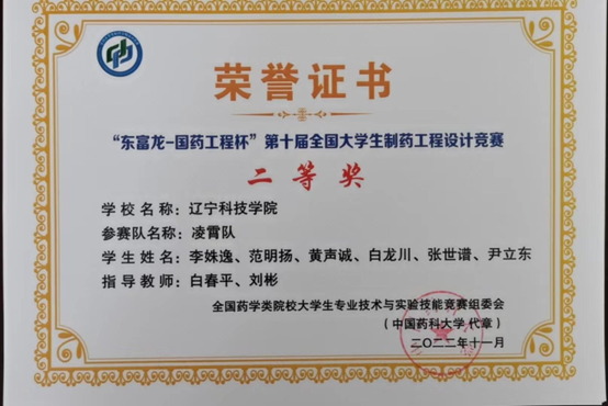 日前由全国药学类院校大学生专业技术与实验技能竞赛组委会主办、湖北工业大学承办的第十届“国药工程-东富龙杯”全国大学生制药工程设计竞赛于2022年11月落下帷幕。本次竞赛题目为“年产7000万支新冠疫苗制剂车间工艺设计”。来自全国的107所高校共提交了228件有效参赛作品,我校药化学院参赛队伍“凌霄队”再获佳绩,取得二等奖的好成绩。
